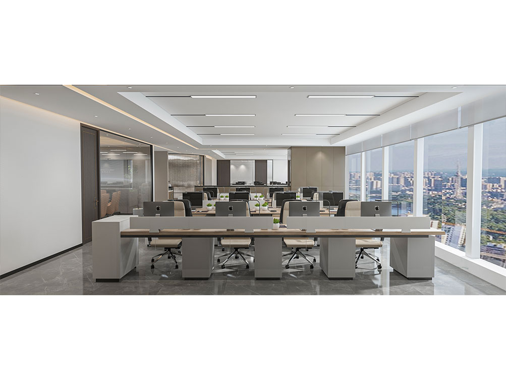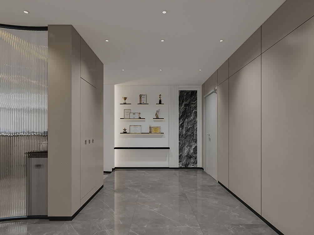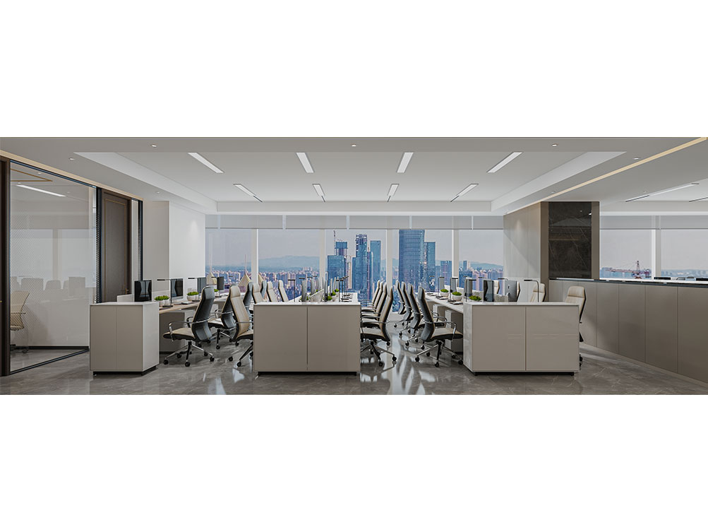 風(fēng)順集團(tuán)裝修效果以 “大氣沉穩(wěn) + 現(xiàn)代高效” 為核心,整體采用深灰、米白為主色調(diào)搭配金屬線條點綴,凸顯企業(yè)質(zhì)感。前臺接待區(qū)用大理石背景墻嵌入集團(tuán) LOGO,搭配簡約大氣的接待臺與藝術(shù)擺件,營造專業(yè)第一印象;濟(jì)南辦公室裝修為開放辦公區(qū)采用模塊化工位設(shè)計,配備獨立收納與人體工學(xué)座椅,墻面穿插集團(tuán)發(fā)展歷程掛畫與綠植,兼顧高效與舒適;會議室按規(guī)模配置高清會議系統(tǒng)與吸音材質(zhì),滿足不同商務(wù)需求;同時預(yù)留休閑茶水區(qū)與榮譽展示墻,既方便員工放松,也直觀傳遞企業(yè)實力,整體空間兼具品牌形象與實用功能。