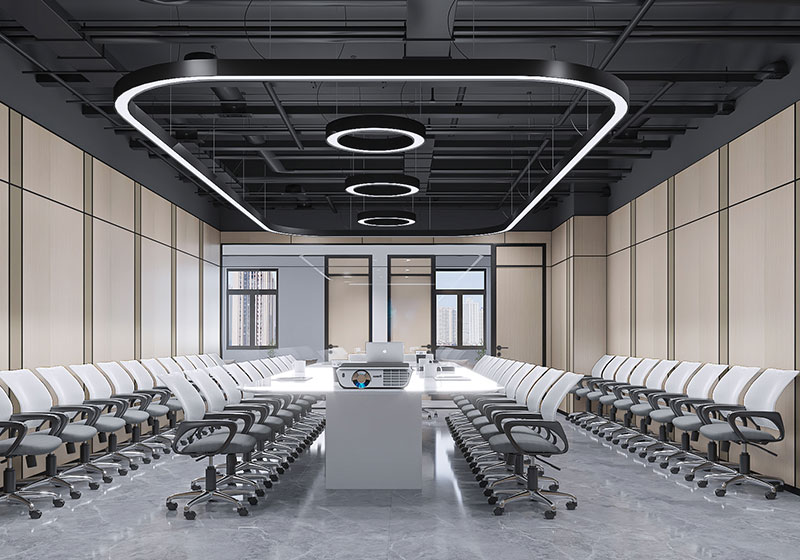 作為濟(jì)南辦公室裝修中產(chǎn)業(yè)園區(qū)辦公空間的代表,聯(lián)東 U 谷以科技為核心,弧形墻體柔化空間線條,淺灰大理石地面搭配嵌入式燈光營造簡潔質(zhì)感;一側(cè)展示墻整合品牌文化與產(chǎn)品信息,另一側(cè)玻璃隔斷的會議室嵌入科技感燈帶,適配企業(yè)產(chǎn)品展示與商務(wù)洽談,是濟(jì)南辦公室裝修中 “產(chǎn)業(yè)屬性 + 功能展示” 融合的優(yōu)質(zhì)案例。